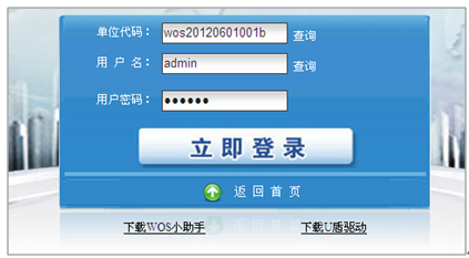 八、注册结束,再次输入网址:http://wos.weidi.cn,按照手机收到登录信息登录页面。如图所示: